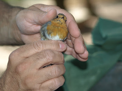 hui realitzem una sesió estiuenca d´anellament a la Font Roja, destacar la presencia de Iñaki Aranguren de Aranzadi, dins de la zona dels paelleros on la gent amb molta educació s´atraca per vorer que estem fent i d´eixa manera expliquem un poc la nostra tasca.Un total de 13 espècies d´ocells son marcades amb anelletes metàliques.